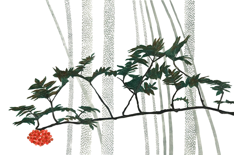 Puupiirroksia Jyväskylän uuden sairaala Novan ovi- ja huonepaneeleihin